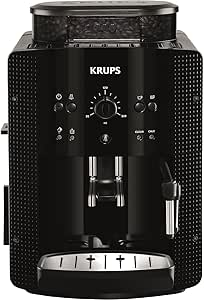 KRUPS Arabica Picto Kaffeevollautomat, kompaktes Design, einfache Bedienung, intuitiv einstellbarer Drehregler, Milchschaumdüse, 2-Tassen-Funktion, Kaffeemaschine, Schwarz, EA810870